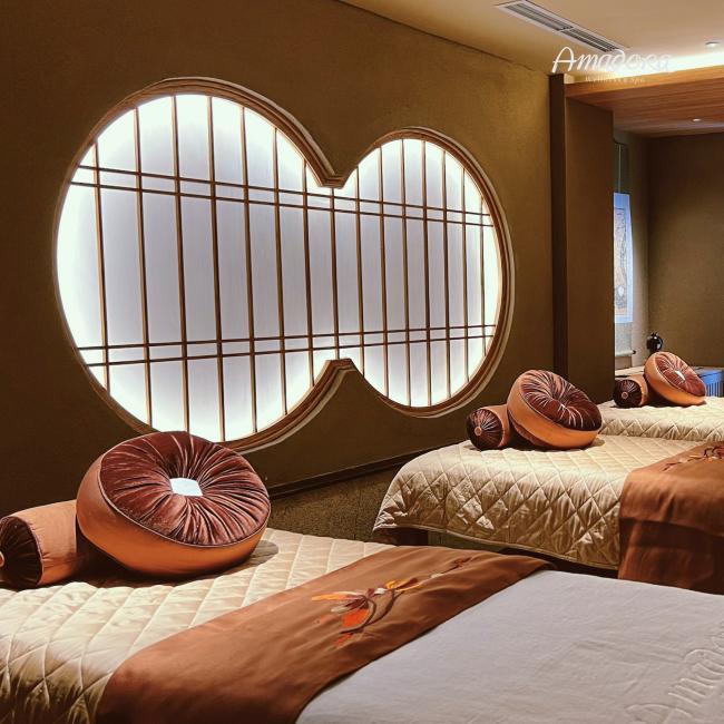 Sở hữu nét kiến trúc đậm nét mỹ cảm Nhật Bản, không gian tại Amadora trân trọng sự tối gian nhưng vẫn gợi nên sự thoải mái, gần gũi với các chất liệu tự nhiên như gỗ, tre nứa... Mỗi liệu trình tại đây đều sử dụng các dòng mỹ phẩm cao cấp hàng đầu từ Nhật Bản và vùng duyên hải nước Pháp, với chiết xuất thượng dược thiên nhiên lành tính. Đặc trưng nhất chính là cung cách phục vụ từ trái tim - với sự tinh tế, nhiệt thành và thấu hiểu khách hàng luôn là bài học đầu tiên của mỗi Con Người tại Amadora.